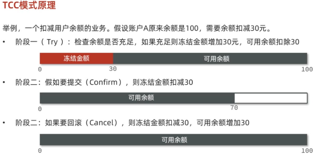 两个阶段,第一个阶段各自执行但不提交,把自己的执行结果上报给TC,TC记录后,第二阶段检查状态,如果都成功就提交,如果有一个失败就回滚。能够查到准确数据,但是等待期间不可用。