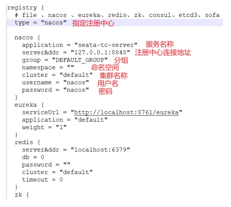 registry: # TC服务注册中心的配置,微服务根据这些信息去注册中心获取tc服务地址