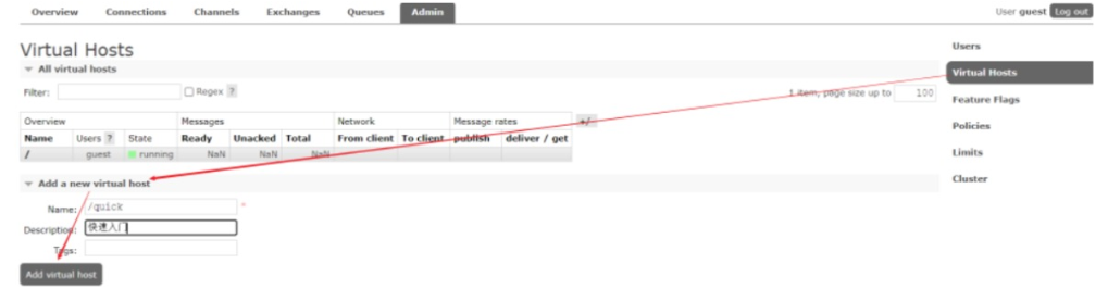 因为要用多个微服务,对应的也有数据库,为了更好区分,我们要隔离起来创建各自项目的虚拟主机