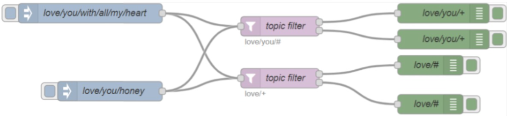 发送消息的时候要订阅主题,那么主题名字需要有命名规则: 比如你要发送汽车相关的,比如 汽车/座椅加热 汽车/开空调…… 那么接收的时候可以用通配符,汽车/* 代表接收有前面汽车的所有消息,可以多层匹配 可以理解为你发快递,发送北京/朝阳区 发到订阅者,然后接收者只要有北京/* 就可以接收到北京/的信息 还有+,这里没写,具体看下面。