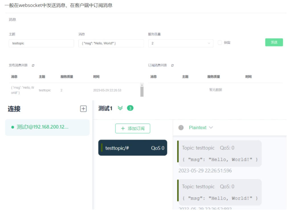 1:发布者发布一个主题,比如开启车联网的汽车空调,然后会有负载,我们把内容存到负载里面。之后订阅者订阅主题就可以取到内容
