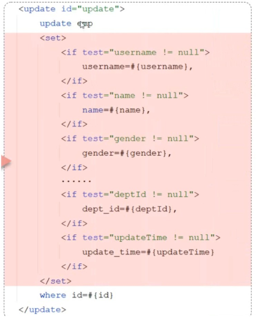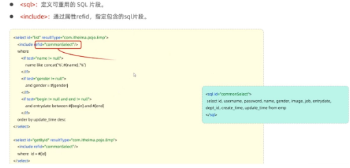 如果有多个查询语句,有公共代码,需要解耦,可以把公共代码写到sql片段中